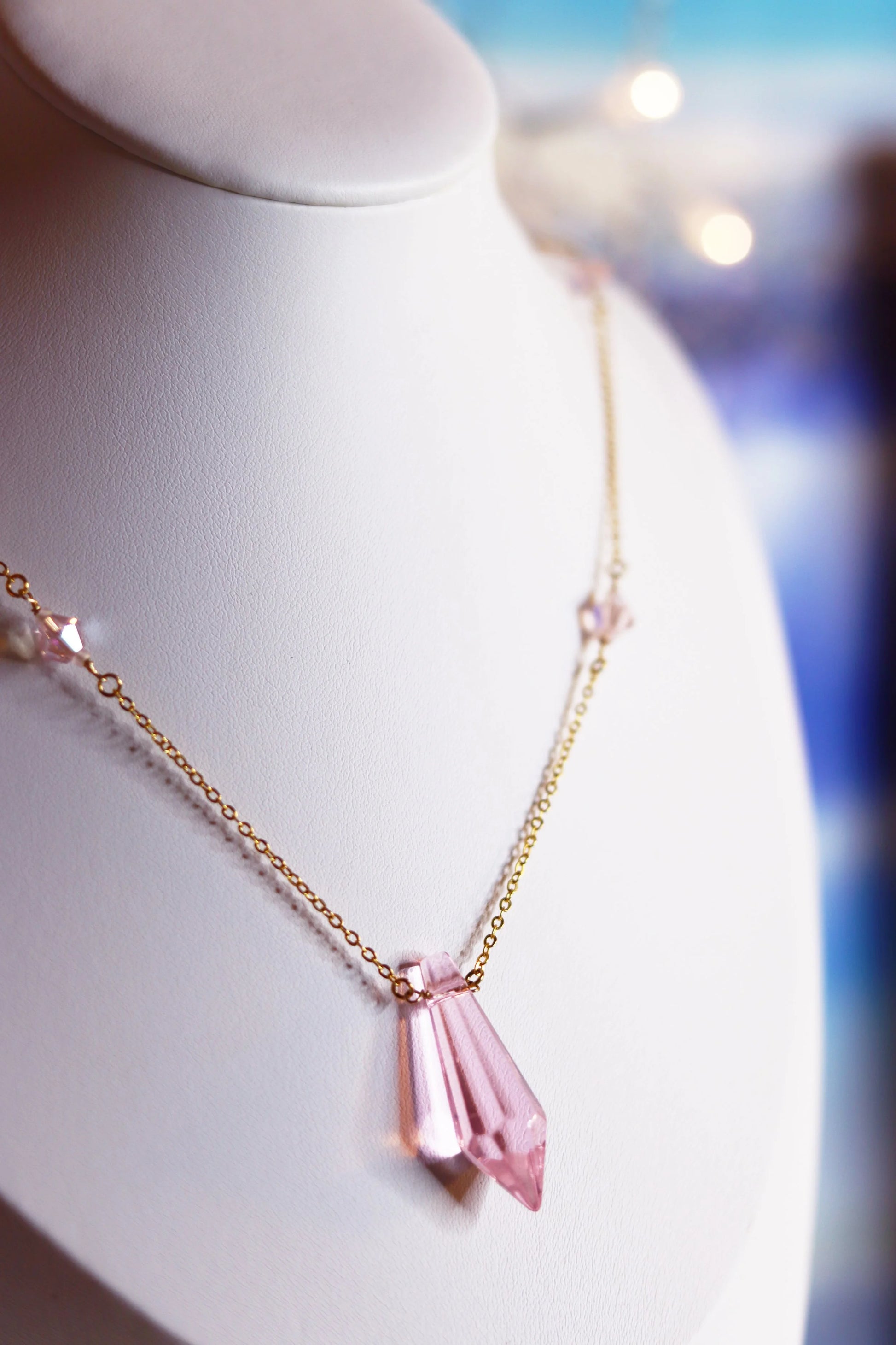 Beautiful Glass faceted pink crystal necklace with 24 k gold plated chains and closures